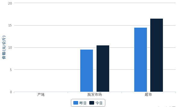 2014年11月21日猕猴桃批发市场价格为10.49元/公斤,超市价格为16.52元/公斤,批发市场价格上调,超市价格上调。