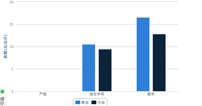 2014年11月22日猕猴桃批发市场价格为9.44元/公斤,超市价格为12.83元/公斤,批发市场价格下调,超市价格下调。