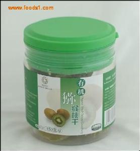 (2)生产过程:原料选好后,用水充分洗净,投入浓度为20%~25%、温度在92~97℃的碱液中浸渍3~4分钟后,立即取出漂洗,并摩擦去皮。猕猴桃片,按大、中、小三级分别切片,厚度4~6毫米。选片,装罐。注入浓度35%温度为80℃的热糖水。排气,封罐。按杀菌公式(5~15)/100℃杀菌,然后冷却至40℃左右。擦净入库贮藏。