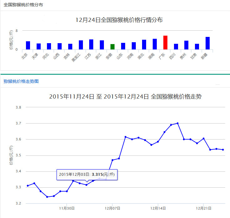 猕猴桃价格 河北秦皇岛农副产品批发市场 3.3元/斤 2015-12-24