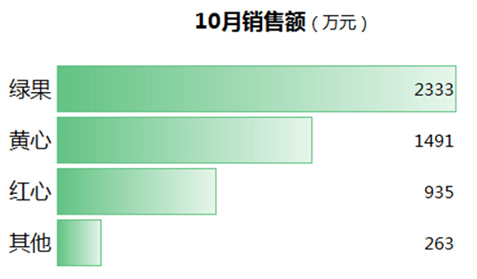 该何如选择需售卖的猕猴桃品类,或者决定每一种品类的进货量多少呢?有效数据可供参考:淘宝大数据表明,猕猴桃的品种有绿心、黄心、红心等品种,其中绿心猕猴桃销量高,其次是黄心,红心销量少。