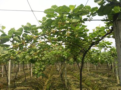 记者看到,一片片绿油油的猕猴桃基地栽满了标准的水泥桩,小小的猕猴桃像葡萄一样已挂满了枝头,几位大姐还着太阳抹芽、除草,他们告诉记者,今年的猕猴桃又是一个丰收年。