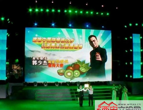 5月21日,国内知名歌手郭少杰和他的朋友们公益演唱会在周至中学隆重举办,演唱会圆满成功!演唱会期间,周至县政府副县长朱建平为郭少杰颁发了”周至猕猴桃宣传大使“荣誉证书!
