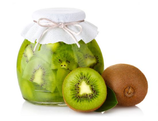 (2)生产过程:原料选好后,用水充分洗净,投入浓度为20%~25%、温度在92~97℃的碱液中浸渍3~4分钟后,立即取出漂洗,并摩擦去皮。猕猴桃片,按大、中、小三级分别切片,厚度4~6毫米。选片,装罐。注入浓度35%温度为80℃的热糖水。排气,封罐。按杀菌公式(5~15)/100℃杀菌,然后冷却至40℃左右。擦净入库贮藏。