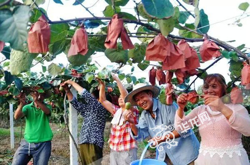 忠兴红心猕猴桃基地里,采摘工人们看到挂满枝头的猕猴桃,个个的乐的笑开颜。 通讯员 汪君 摄