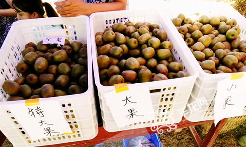 在今日开始的采摘节上,果园根据果实的大小,将采摘下来的猕猴桃分类,并以不同的优惠价向市民出售。 通讯员 汪君 摄