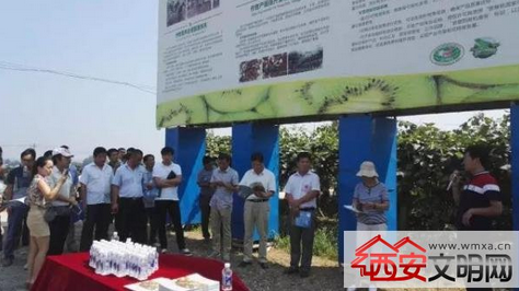 8月12日,陕西省猕猴桃协会一行51人来到周至,考察周至县猕猴桃产业发展状况,周至县果业局副局长陈刚科、周至县猕猴桃产业发展协会会长齐平等陪同参观考察。