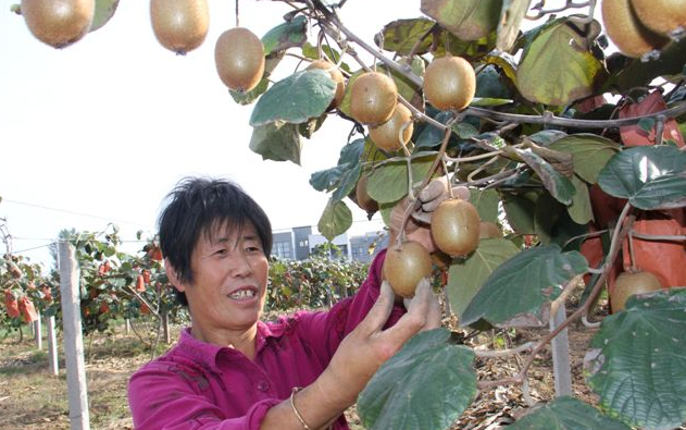 近年来,武功县在发展果业经济中因地制宜,加快推动猕猴桃标准化和规模化种植,全县猕猴桃面积达到9.6万亩,成为农民致富的支柱产业。图为普集街道办事处东高寨村农民薛梅霞近日采摘猕猴桃上市销售。