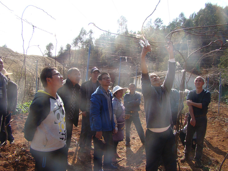 在现场,黄成友通过对田间猕猴桃生长情况了解调查和当地土壤情况分析,有针对性地向农户讲解了冬管的几个重要环节。黄友成结合自身经验,从青龙镇的气候特点入手,围绕猕猴桃冬季病虫防治技术要点、猕猴桃栽培嫁接技术、花果管理、猕猴桃果树整形修剪方法等基础知识进行了详细的培训。为了让种植户更好的掌握相关技术,实地选取了不同长势、不同树形的果树,对修剪位置、修剪方法等进行了示范,并对果农提出的问题一一进行了详细的解答,种植农户纷纷表示通过此次培训大大地提高了对猕猴桃的种植理论水平和技术水平。