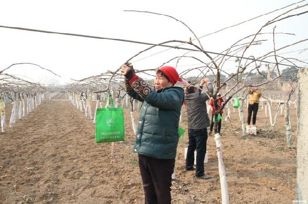 图为薛村群众对猕猴桃园进行春季管理