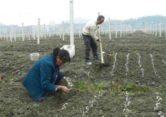 劈接法:用嫁接刀在接头枝截面中央垂直劈深3-5厘米的接口。接穗枝段不宜过长,有1-3芽即可,下端削成楔形,削面长3-5厘米,随即插入砧枝劈口。砧穗形成层密接,接穗削面上端稍露出。随后用条状塑料薄膜绑缚和覆盖,仅露出芽眼。嫁接好后,可用大小适宜的塑料袋将接口及接穗罩上,密封袋口,并固定好,春季萌芽后及时破袋放梢。