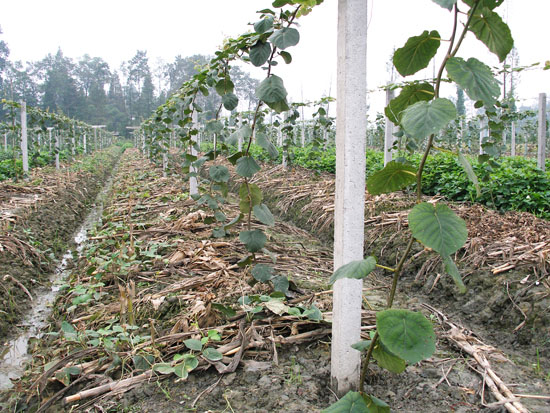 北方猕猴桃产区每年6月~8月为高温季节,如果地面不覆盖,由于温度高,地表水分蒸发快,枝条停止生长,尤其在河道两旁沙地上更为严重。因此,要对地面及时进行覆盖,降低地表温度,增加空气湿度。