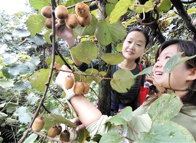 “以前从我们这里走路要一个半小时才能到场镇上,现在在家门口就把生意做了!”猕猴桃树的主人、63岁的村民袁华芬说,在路还未修起来之前,周围许多村民都是贫困户,“不单是猕猴桃,许多农产品都运不出去。”如今,水泥路修到了她家门口,家里不但办起了农家乐,田地里的蔬菜水果,在家门口就卖了出去。而且游客们自己上门采摘,既享受了快乐,又品尝了天然美味。