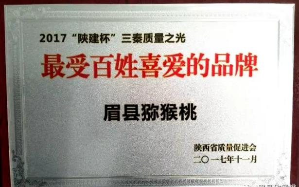 11月9日,在由陕西省质量省工作推进委员会主办的2017年度三秦质量之光颁奖典礼上,眉县猕猴桃荣获“受百姓喜爱的品”称号,位居20个获奖品之。