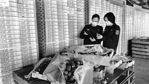 1月21日,深圳盐田检验检疫局工作人员对一批被电子检验检疫(e-CIQ)主干系统抽中的意大利猕猴桃进行现场查验。