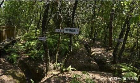 沿着栈道盘桓而上,放眼望去日军当年修筑的各种地堡、掩体、交通壕、炸弹落坑、防空洞、地道、战壕等遗址密如蛛网,纵横交错;可想而知当时战况的惨烈,远征军的悲壮,走着走着,来到了松山主峰——子高地。醒目的两个巨大土坑,就是当年战争中被炸毁的两个日军主碉堡落坑。讲解员介绍说,松山主峰是通过挖掘坑道至碉堡下,填埋3吨TNT炸药炸毁敌堡才攻克的。游完主峰顺山而下依次是肉搏山战场、日军补给车道,当看到陆军第八军103师阵亡将士公墓时,已到山脚。