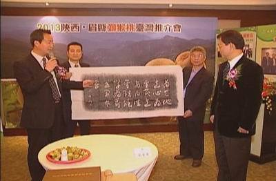 在11月30日上午举行的陕西优势特色农产品专场推介会暨贸易签约仪式上,景耀平向与会的国内外客商隆重介绍了宝鸡眉县猕猴桃。眉县金桥果业专业合作社与武汉市沙湖水果批发市场、眉县金色秦川猕猴桃专业合作社与北京市秦人瑞博果业有限公司当会签订了猕猴桃购销协议,总成交额达5300万元。