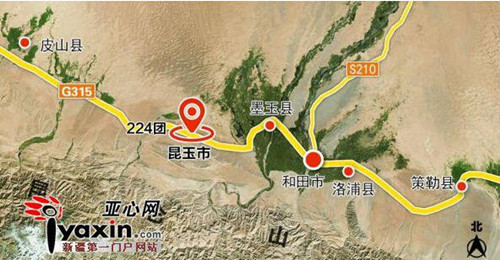 昆玉市中心城区位于兵团第十四师224团,行政区域总面积为687.13平方公里,分布于和田地区墨玉县、皮山县、策勒县,距和田市78公里。