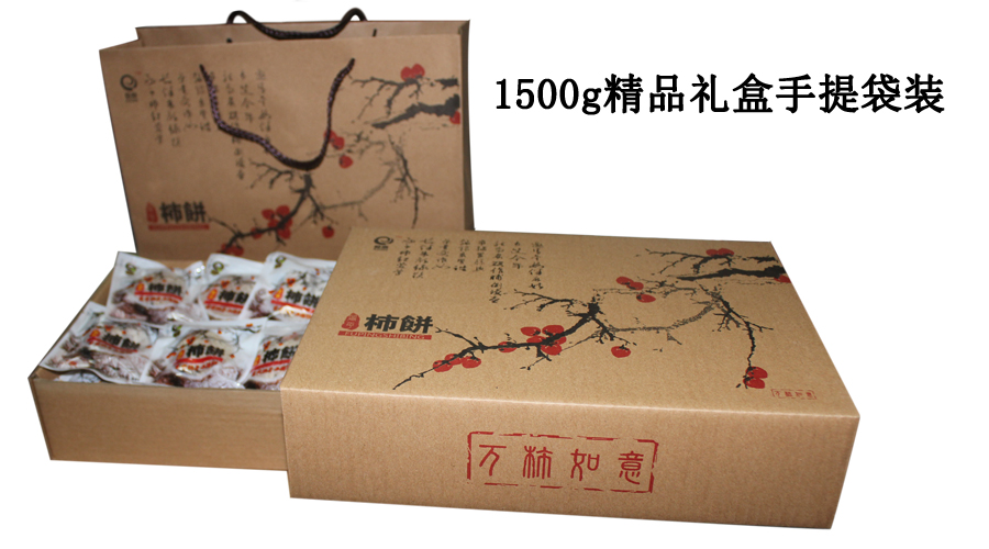 富平柿饼现在已经成为了时尚送礼选,随着富平县被人民熟知,富平柿饼在各地都掀起了一股购买热潮。爱秦富平柿饼礼盒装采用自主包装设计的精美手提袋,是送礼柿饼的选。