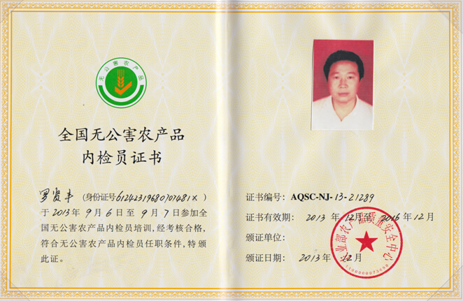 无公害农产品内检证书