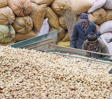 记者近日在“花生之乡”——辽宁省大连市普兰店区墨盘乡看到,全乡都在忙于花生脱果、筛选、销售。乡文化站大院里筛选机轰鸣,输送带滚动,把选好的花生一袋袋送上大货车,运到大连港装船,销售到德国、意大利等欧洲国家。负责全乡花生收购销售的张人健告诉记者,全乡今年产的900万公斤花生,70%以上出口欧洲,收购价比去年好,每公斤卖到6元,花生种植户每亩收入比往年增加近500元。